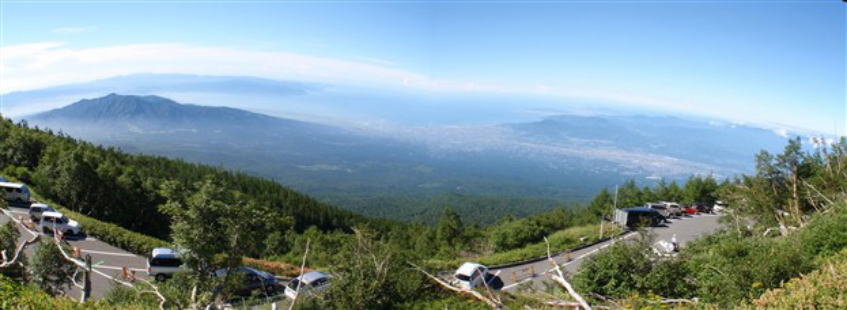 ![]() 静岡の市街地、その先に駿河湾と伊豆半島を眺める |