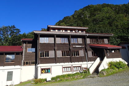 | 今回の目的の一つ蓮華温泉露天風呂に入る事だ。到着後、早速蓮華温泉に出かけた。分岐を左に10分で”三国一ノ湯”大変小さく一人で満杯だ。湯温はかなりぬるく通好みだ。ここから5分で”仙気ノ湯”この露天風呂が一番大きい。展望が開け雪倉岳、朝日岳などの山々が眼前に広がる。さらに2〜3分登ると一番高所にある”薬師湯”岩で囲まれた露天風呂は眺めが最高だ。”仙気の湯”からしばらく戻って分岐を左側へ、そして降ると緑に囲まれた”黄金湯”やわらかな湯はリラックスできる。一時間以上かけて十分楽しむ事が出来た。 |
