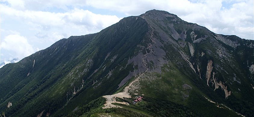 ![]() 稜線を常念に向けて。 ガスが切れているとこんな風に見える(5月撮影) |