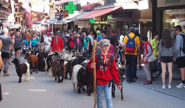 ![]() 日に何回か通りを練り歩く、羊の行列 |