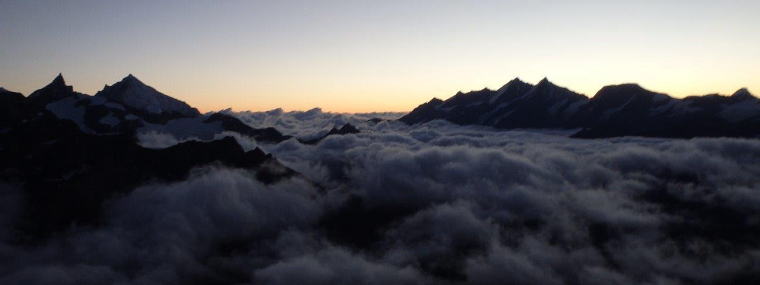 ![]() 夜明け前5時50分、この雲の下がツェルマット |