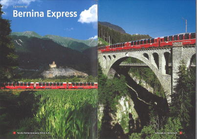 ![]() GLACIER EXPRESS名入り 急勾配を走る列車でも倒れないワイングラス ![]() 車内で配られたパンフレット |