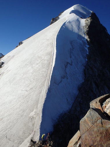 | 7時55分ピッツ・パリュの手前のピーク(Piz Spinas〔3,823m〕)に到着。 |